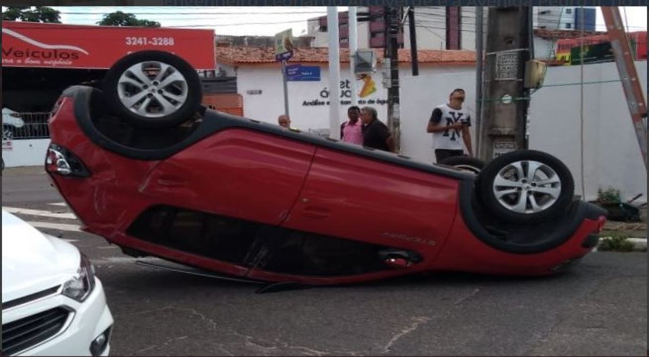 Uma colisão, entre dois veículos, em um cruzamento entre a Rua Engenheiro Leonardo Arcoverde e a Avenida Pedro II, no bairro da Torre, em João Pessoa, acabou provocando a capotagem de um dos carros envolvidos no acidente, que ficou de pernas, ou melhor, de pneus para o ar.