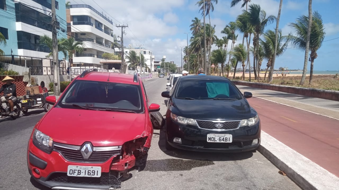 Na manhã desta quinta-feira (12), um acidente de trânsito foi registrado na Avenida Cabo Branco, em João Pessoa. Um homem perdeu o controle do veículo que dirigia e colidiu com dois carros que estavam estacionados na via.
