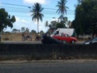 Um carro capotou no início da tarde desta segunda-feira (14) no km 22 da BR-230, no bairro de Água Fria, em João Pessoa.