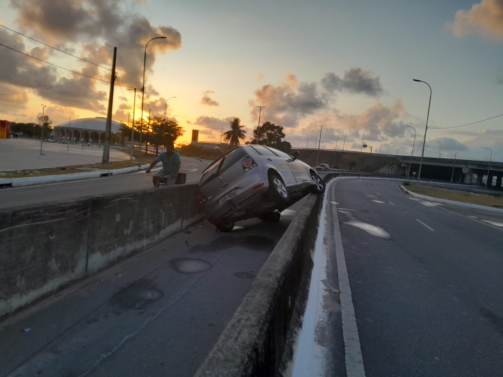 Um carro foi encontrado abandonado no canteiro central de uma avenida próxima ao Estádio Almeidão, no bairro do Cristo, em João Pessoa, na manhã desta terça-feira (17).