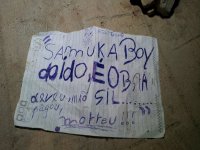 Um detalhe chamou atenção da policia, ao lado dos corpos havia um bilhete direcionado ao apresentador Samuka Duarte, com a seguinte descrição; “ Samuka boi doido, é o Brasil…. deveu não pagou morreu!!!”.