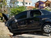 O veículo que ela estava foi abordado por dois homens em uma moto, que solicitaram que ela parasse o carro e repassasse a chave do veículo. Sem atender aos criminosos, a mulher acelerou o carro e acabou colidindo em um muro.