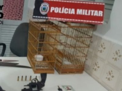 Com eles a Polícia Militar apreendeu um revólver calibre 38 com cinco munições intactas, além do vestuário, capacete e a motocicleta Honda Bros, utilizada no assalto ao posto Martins, além de três facões e algumas aves silvestres mantidas em cativeiro, de forma ilegal.
