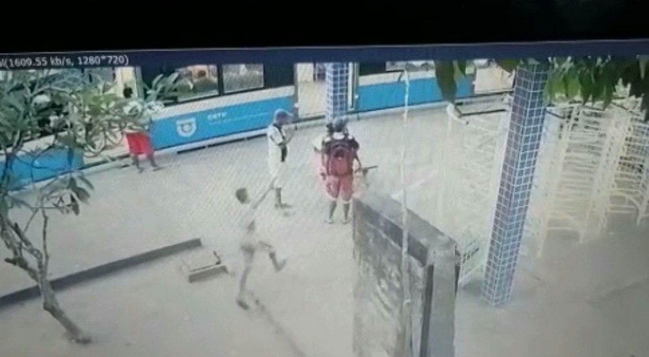 Um adolescente de 16 anos, suspeito de matar um preso do regime semiaberto na estação ferroviária de Santa Rita, cidade da Grande João Pessoa, e ferir uma mulher que passava na hora do tiroteio, foi detido durante a noite deste domingo (25). O crime foi registrado por câmeras de segurança.