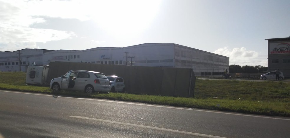 No outro acidente, uma carreta tombou no início da manhã desta quarta-feira (27), na BR-101, km 94, sentido Recife-João Pessoa, na Paraíba. De acordo com o condutor da carreta, ele foi fechado por um carro de passeio ao realizar uma manobra na rodovia.