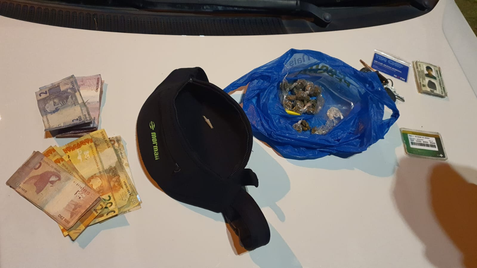 Já nos Bancários, os policiais estavam realizando rondas na Praça da Paz, quando perceberam uma pessoa em atitude suspeita que, ao observar a presença da equipe policial, fugiu, deixando no local uma bolsa. Na averiguação, foram encontradas 17 trouxinhas de maconha, dois pinos de cocaína e 330 reais em espécie.