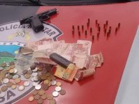 Com os suspeitos foram encontrados também a pistola calibre 7.65, utilizada no roubo, e 22 munições, a motocicleta roubada após o assalto e a motocicleta em que chegaram, que também era roubada.