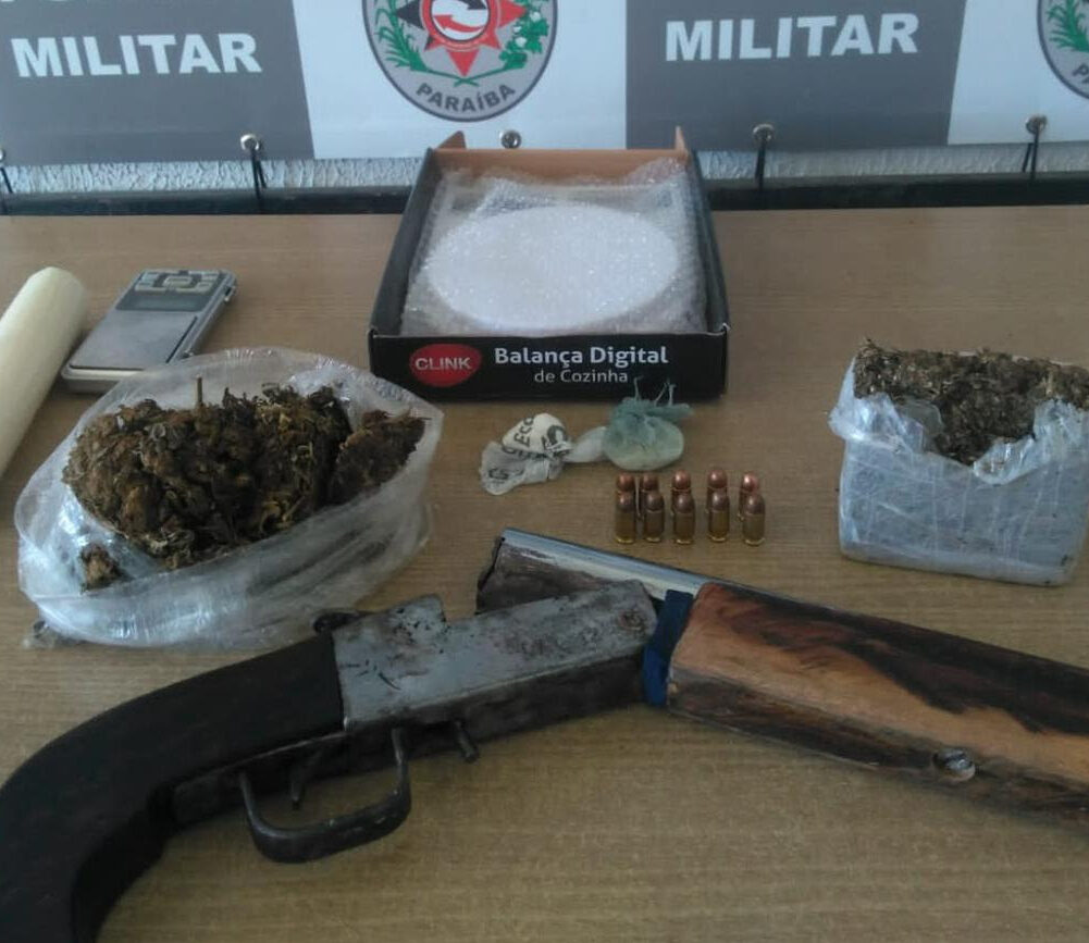 Em Caaporã, policiais militares da 1ª CIPM prenderam um homem de 19 anos, suspeito de envolvimento com o tráfico de drogas. Durante uma abordagem a um veículo, o acusado não obedeceu a ordem de parada dos policiais, e tentou fugir efetuando disparos, houve confronto e os policiais conseguiram realizar a abordagem. Dentro do veículo foi encontrada uma pistola calibre 380 e uma espingarda calibre 12, além de vários papelotes de maconha. O acusado e os materiais apreendidos foram apresentados à Delegacia de Polícia, em Alhandra.