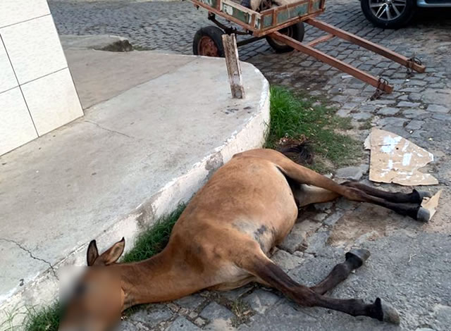 Os suspeitos utilizaram instrumentos como pá, enxada e chicote para executar o animal indefeso. O ato repulsivo teve como cenário a rua Tiburtino Cartaxo, situada no Centro do município de Cajazeiras.