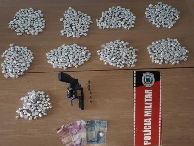 Policiais militares da Força Tática prenderam um homem com 856 papelotes de maconha, uma arma de fogo e munições. A abordagem aconteceu por volta das 12h desta terça, após os policiais observarem o comportamento suspeito do homem. Ele foi conduzido para Central de Polícia.