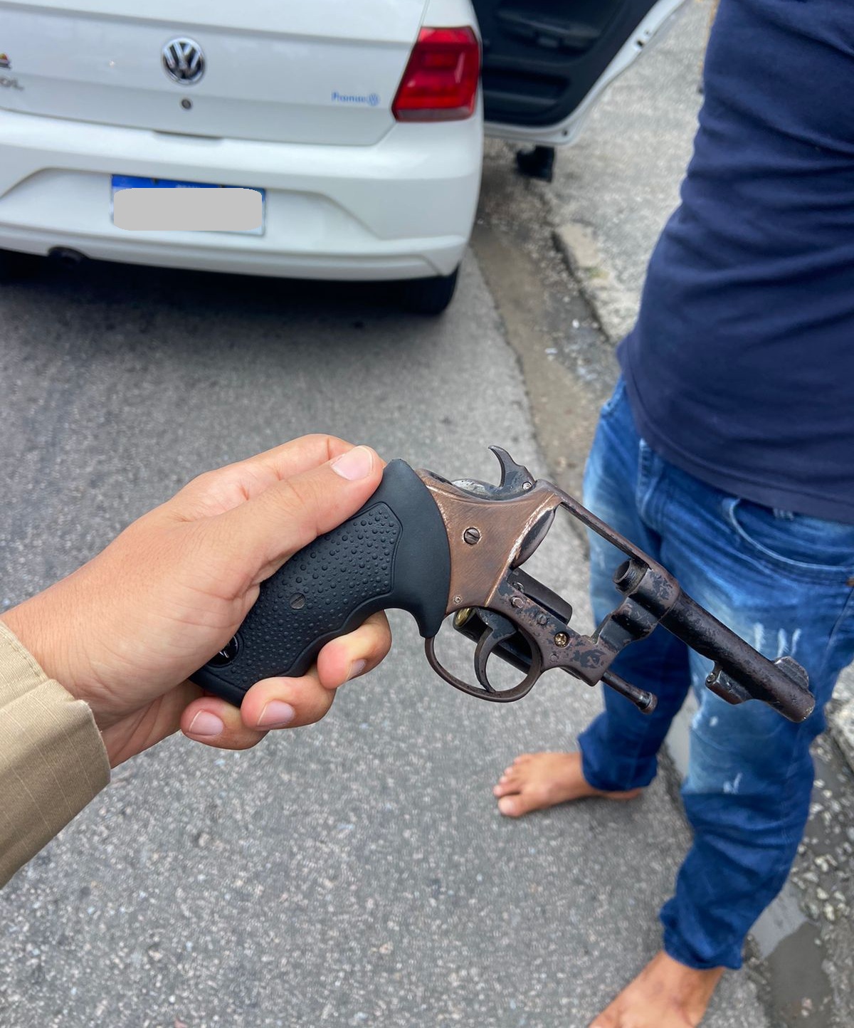 Na abordagem da PM, os acusados foram flagrados com um revólver e munições. Eles têm 28 e 26 anos de idade, e um deles já cumpria pena por roubo, mas teve mandado de prisão expedido para regressão cautelar.