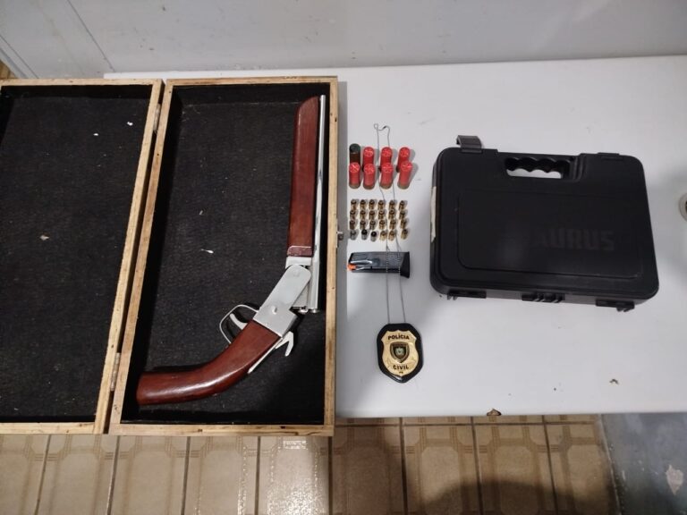 Durante a captura dos indivíduos, os policiais conseguiram apreender também uma espingarda, munições de diferentes calibres e carregadores.