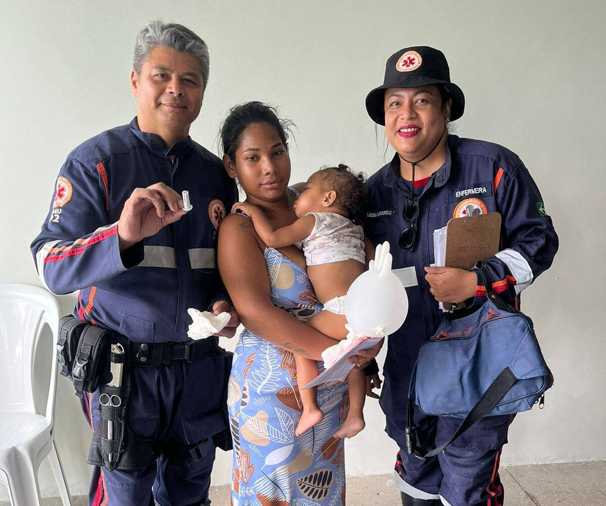 “Fizemos as primeiras manobras não conseguindo desengasgar. Colocamos na unidade de suporte básico e acionamos uma unidade de suporte avançada com o médico. Encontramos a outra unidade perto do contorno do Shopping. Pegamos a criança, tiramos da nossa unidade, atravessamos a pista e colocamos na unidade de suporte avançado, quando o médico Dr. Leonardo conseguiu retirar o objeto usando uma pinça cirúrgica”, explicou o socorrista Eduardo Pereira.