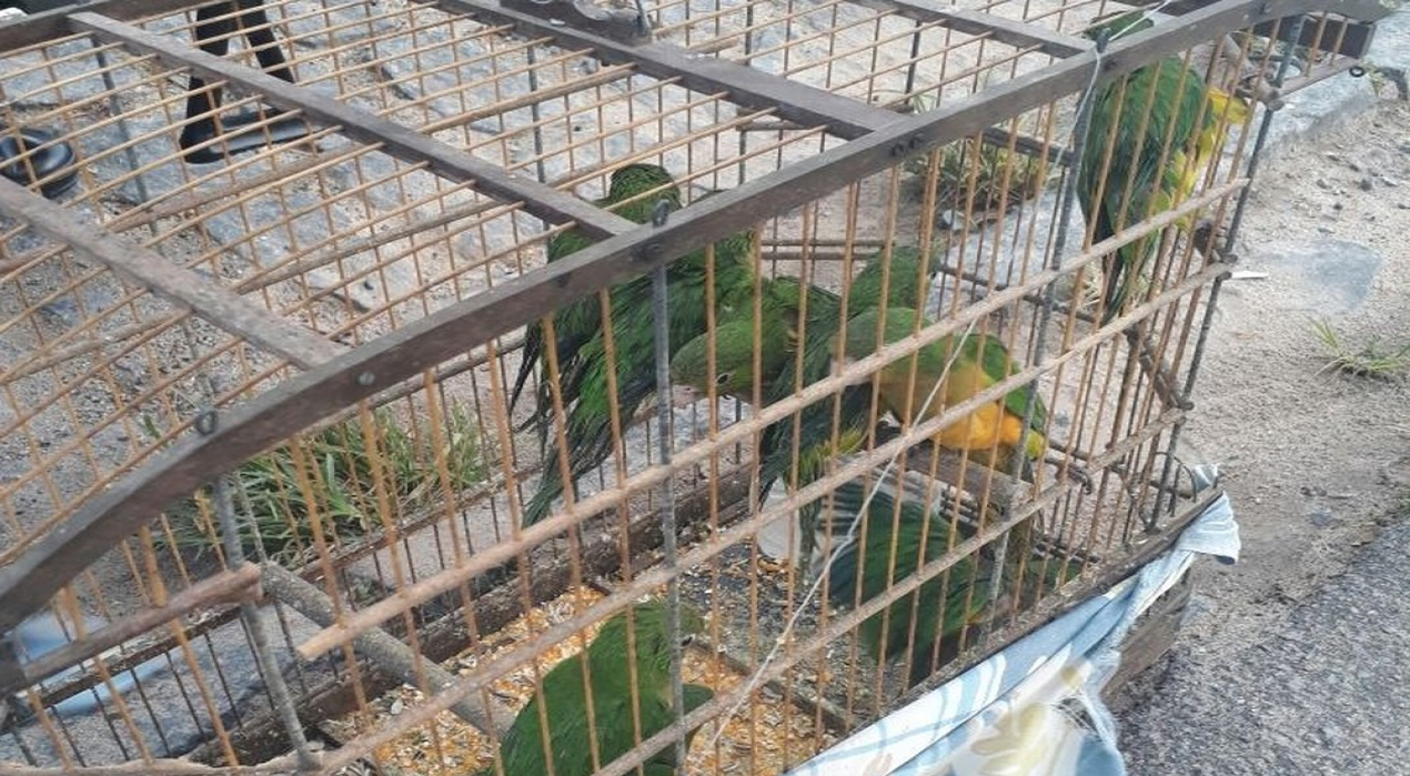 A polícia encontrou o homem em atitude suspeita, com várias gaiolas, em um trecho da BR 104 e quando pararam para fazer a abordagem, constataram que os animais estavam prestes a serem comercializados ilegalmente.