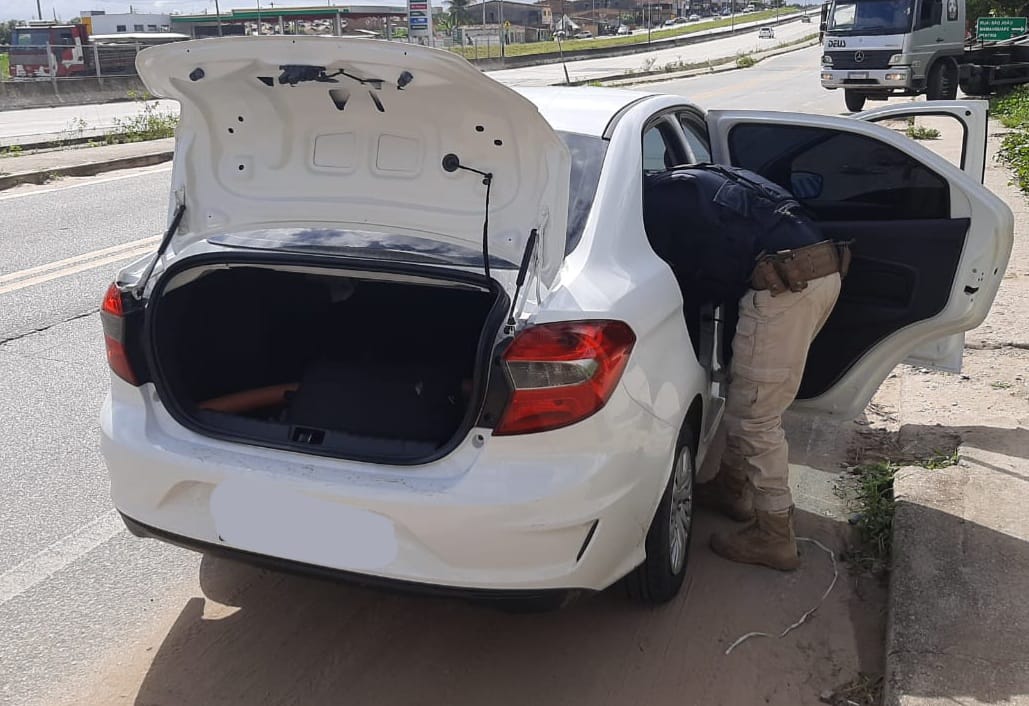 A equipe de policiais abordou o automóvel Ford Ka na altura do km 40, na BR 101. Ao realizar a fiscalização, verificaram que o carro pertence a uma empresa locadora de veículos. O automóvel foi locado em janeiro de 2021, na cidade de Natal, capital potiguar, e nunca devolvido à empresa proprietária. O veículo possuía registro de roubo no sistema.