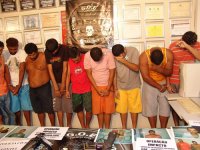 O Grupo de Operações Especiais da Polícia Civil (GOE) apresentou à imprensa na manhã desta segunda-feira (9) um bando acusado em vários crimes na Grande João Pessoa, entre eles, assaltos e seqüestros. Foram presos: Alisson Lourenço Soares, William Nascimento Lira, o Curumim, Luciano Lindolfo da Silva, Douglas da Silva Souza, o pé de gato, Roberto da Silva Ferreira, o Mago Roberto, Thiago da Silva Braz do Nascimento, o Careca, Aurino Amaro Tomé, o Tock, Edson Virgínio da Silva, o Baiano, Joselito Neris, Vei pescador, Aluisio Maximiano da Silva, Ednaldo Firmino de Oliveira, o Caveira, Klauber de Sousa Silva, o Gordo Klauber, Reginaldo da Silva Filho, o Rei e Thiago Matias de Lima. Três deles, Reginaldo, Tiago Matias e Roberto da Silva foram baleados na troca de tiros com os policiais e continuam internados no hospital de Trauma.