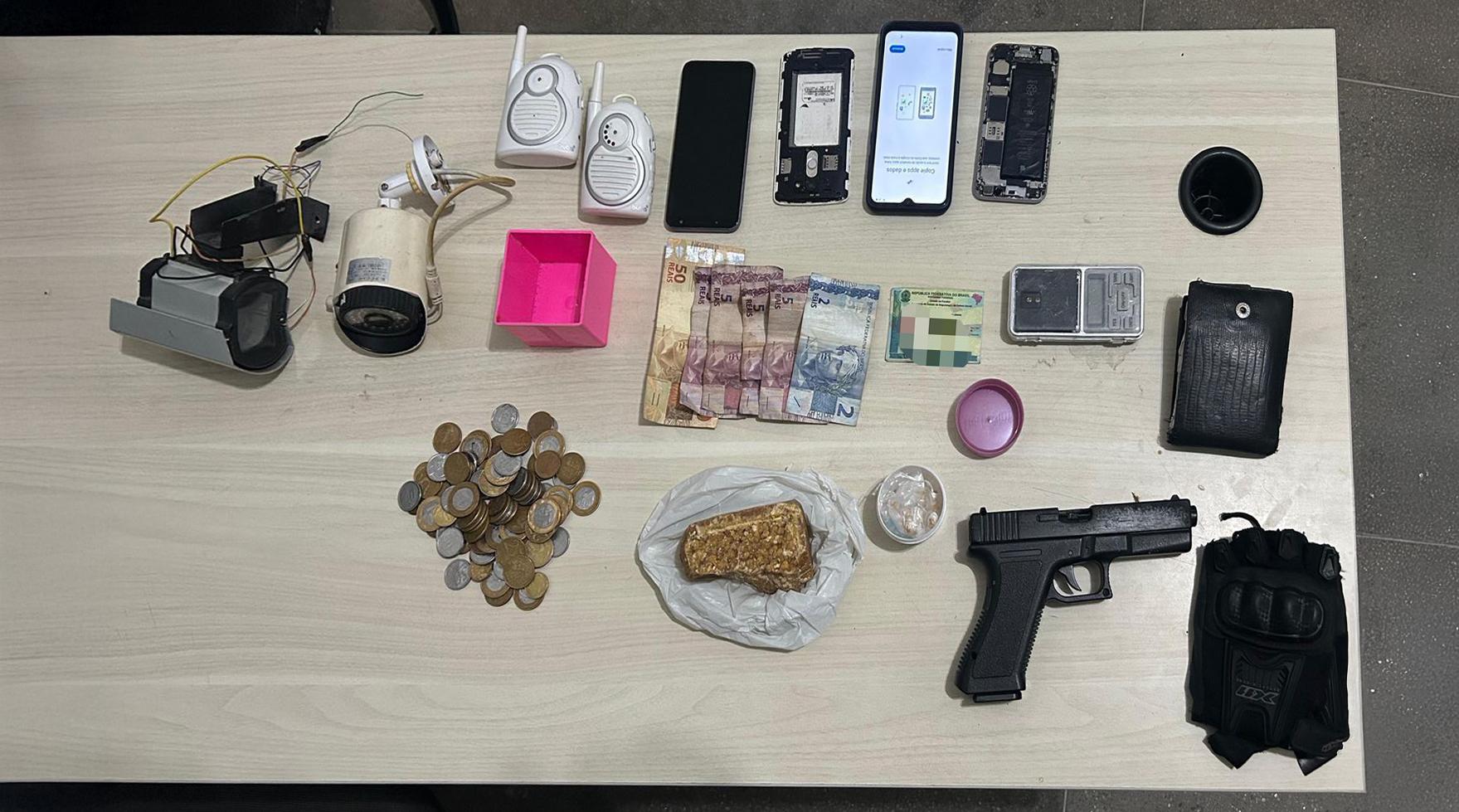 As equipes visualizaram a movimentação suspeita em frente a uma residência e, na abordagem aos suspeitos, foi constatada a entrega de embalagens com drogas ilícitas. Na residência, que servia para o tráfico, foi encontrada uma pedra de crack de aproximadamente 200 gramas, além de dinheiro e diversos materiais relacionados ao tráfico, incluindo rádios comunicadores, balança de precisão, celulares, câmeras de monitoramento e um simulacro de arma de fogo.
