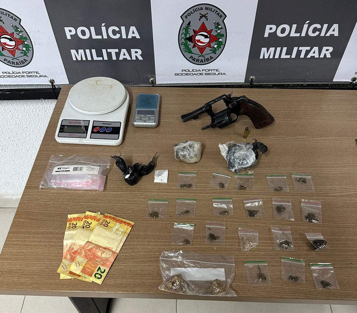 A prisão aconteceu no bairro do Valentina de Figueiredo durante rondas e abordagens. O suspeito foi preso com várias porções de maconha, crack e cocaína, como também duas balanças de precisão e um revólver, calibre 32.