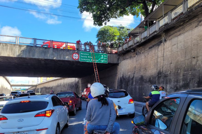 Na tarde desta quarta-feira (24), um homem sofreu uma queda de um viaduto que passa sobre a Avenida Epitácio Pessoa, na região próxima ao Hospital de Emergência e Trauma, em João Pessoa. O incidente ocorreu no sentido João Pessoa-Bayeux, quando o indivíduo caiu em cima de uma viatura do Corpo de Bombeiros que transitava pela BR-230.