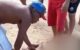 Um vídeo que circula nas redes sociais mostra o homem caído na areia da praia.
