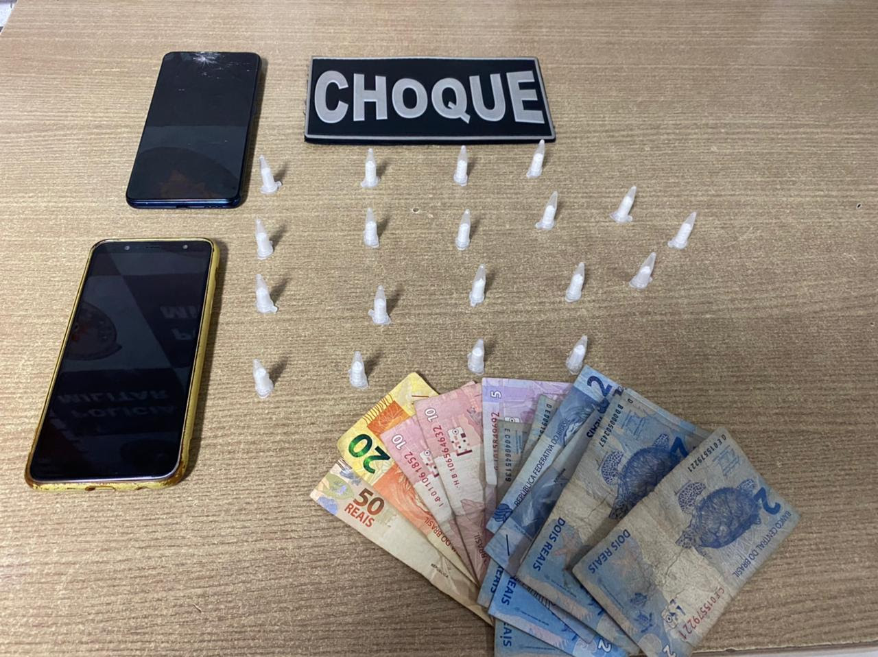 Há suspeitas de que o preso estaria atuando nas atividades do tráfico na comunidade, já que os policiais encontraram com um jovem que estava com ele, pinos de cocaína e dinheiro trocado. O segundo suspeito, que tem 19 anos, também foi detido.