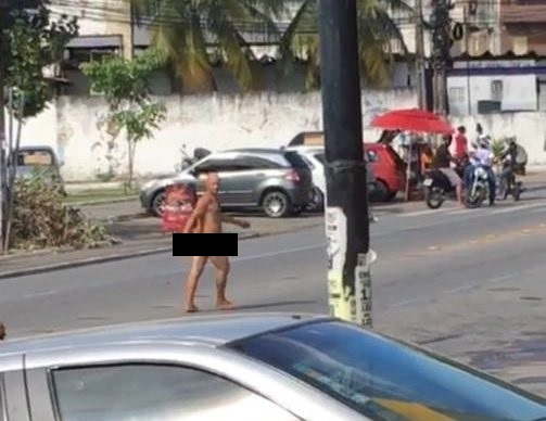 Nesta quinta-feira, dia 08, um homem foi detido completamente nu, caminhando com uma faca na mão na Avenida Josefa Taveira, a principal do bairro de Mangabeira.