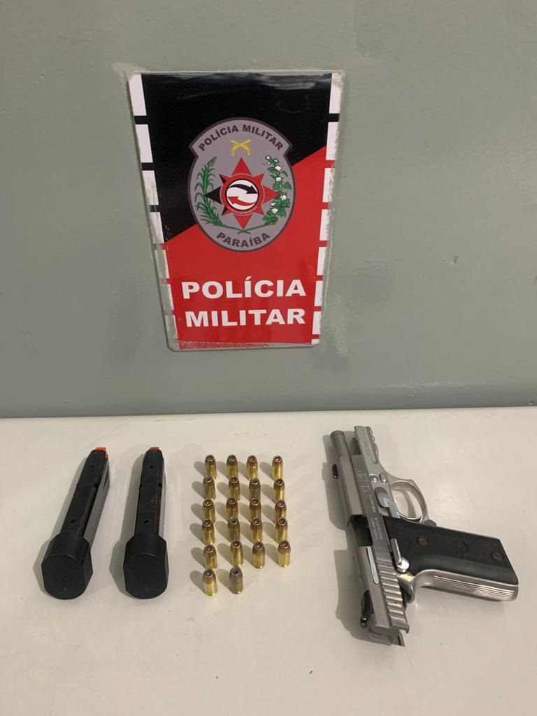 Policiais do 7º Batalhão da PM prenderam um suspeito portando uma arma de fogo e munições na cidade de Santa Rita.