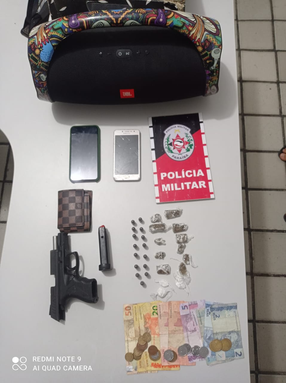 A Polícia Militar apreendeu uma pistola, 11 porções de maconha e quatro de cocaína, nessa quarta-feira (28), ao abordar um carro no centro da cidade de São Bento, no Sertão da Paraíba. Um homem que estava no veículo foi preso em flagrante.