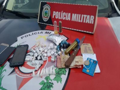 Com o acusado, identificado por “Emanuel”, a polícia apreendeu maconha, crack e outros objetos.