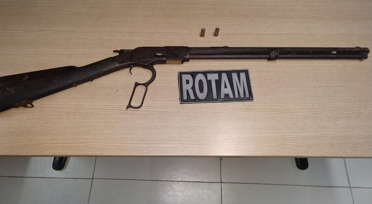 Ele ainda tentou fugir, mas foi preso pela Polícia Militar. Com ele foram apreendidos um rifle calibe 44 com duas munições intactas e R$ 1,4 mil.