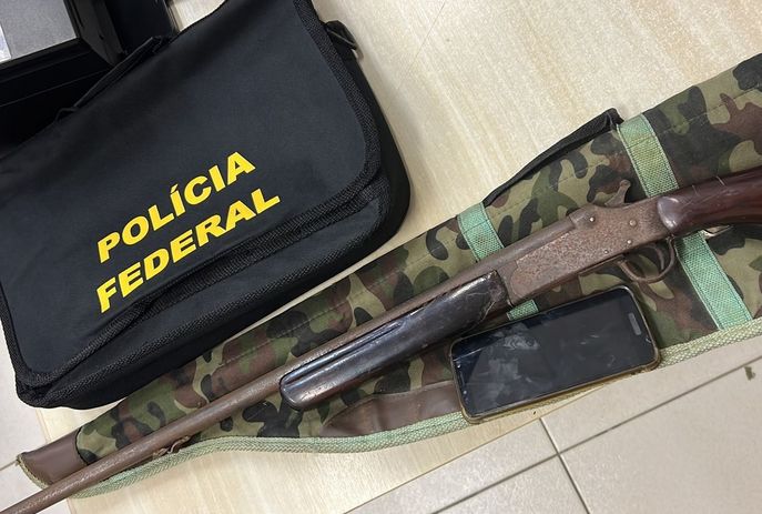 Nas buscas os policiais federais encontraram material pornográfico envolvendo crianças e adolescentes armazenados no celular do investigado e também uma espingarda com numeração suprimida.