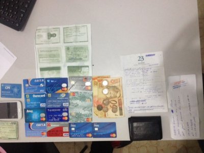 Foram apreendidos com o acusado vários cartões de crédito em nome de terceiros, além de papéis com anotações de números de cartões e documentos pessoais das vítimas.