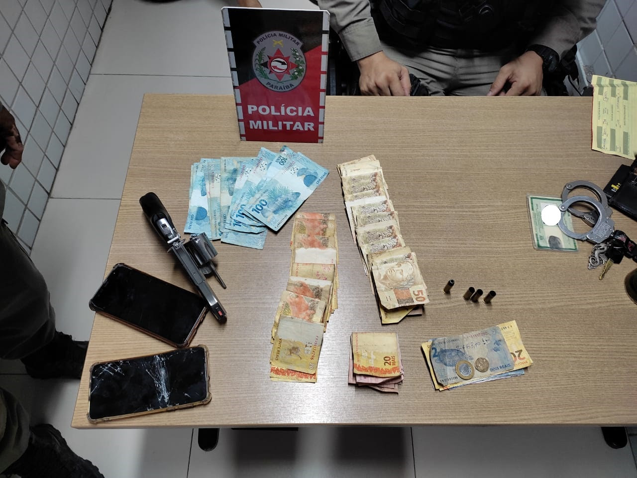 A Polícia Militar prendeu, nessa segunda-feira (5), um homem e apreendeu um adolescente suspeitos de efetuarem disparos de arma de fogo em via pública no bairro do Rangel, na Capital. A ação ainda resultou na apreensão de um revólver calibre 38.