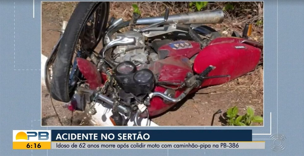Um idoso de 62 anos morreu após bater moto em caminhão-pipa na PB-386, no Sertão da Paraíba. Ele pilotava a moto quando perdeu o controle e bateu no caminhão que viajava no sentido contrário.