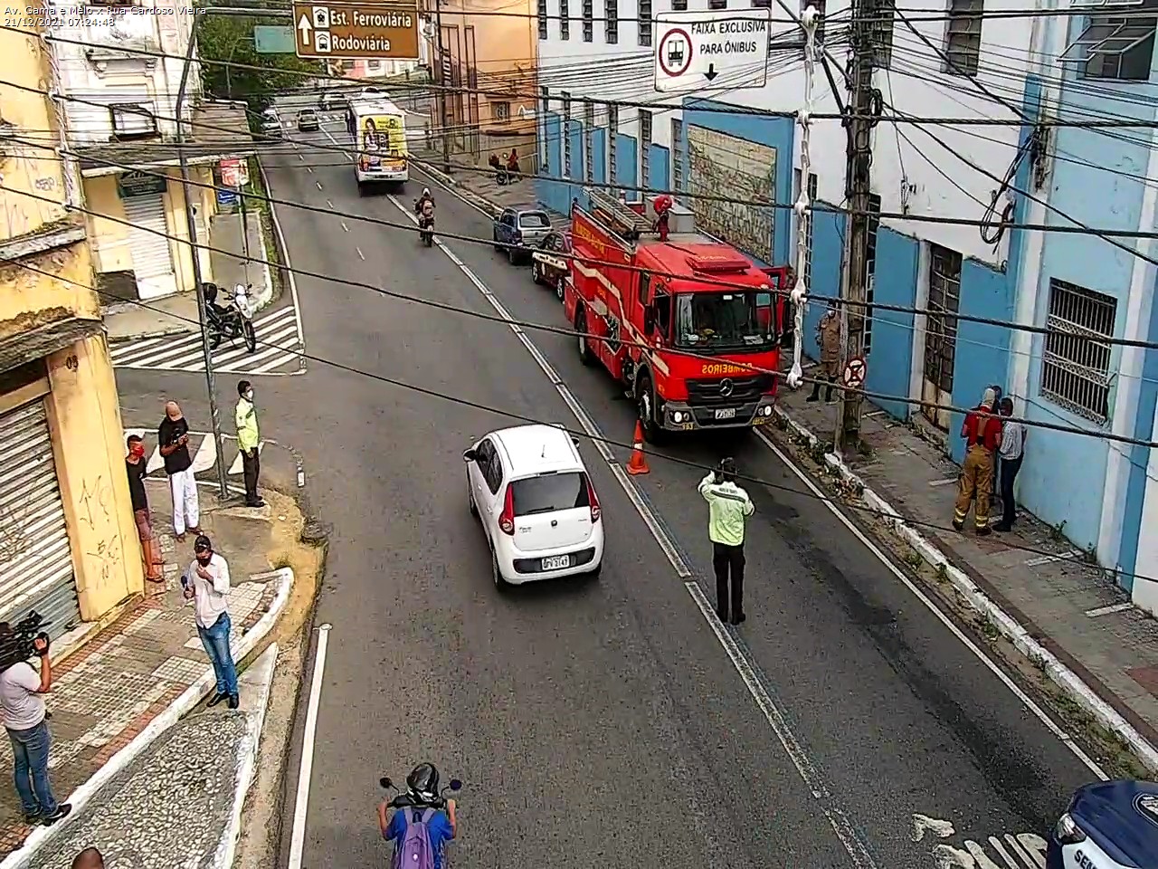 Por conta do trabalho para debelar as chamas, a Semob informou que a faixa exclusiva de ônibus está bloqueada.