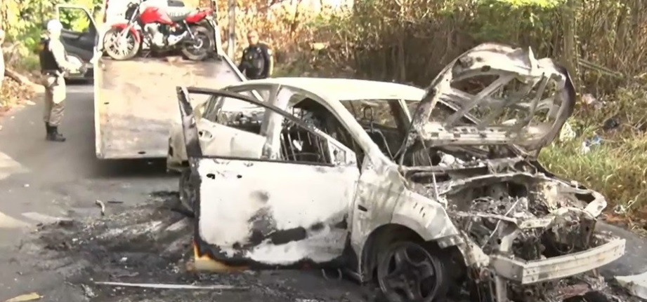 Um veículo foi encontrado, na madrugada de hoje (26), completamente destruído. De acordo com a Polícia, o veículo pode ter sido incendiado por criminosos que usavam o carro para realizar assaltos.