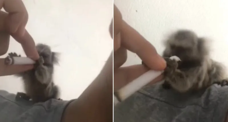 Nas imagens que circularam amplamente na internet, o sagui aparece visivelmente alterado, em um ambiente ao som de reggae, enquanto fuma maconha e bebe na companhia do acusado.