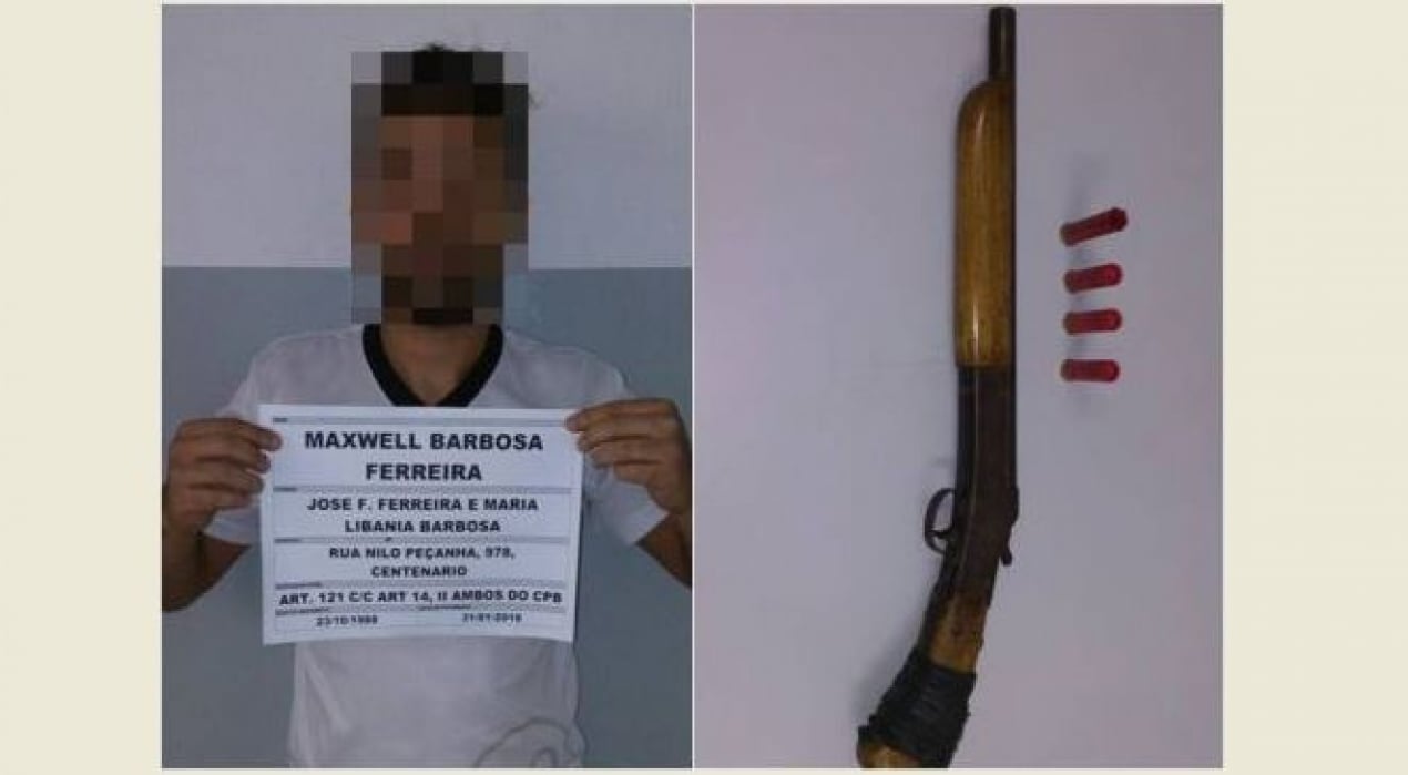 A Polícia Civil, através da Delegacia Especializada em Homicídios de Campina Grande, prendeu nesta quarta-feira (31) Maxwel Barbosa Ferreira, de 29 anos, detido em flagrante delito logo após o cometimento de crime de tentativa de homicídio ocorrido no Bairro do Centenário tendo por vítima José Wilson Braz Silva de 33 anos que sofreu um disparo de arma de fogo tipo espingarda cal. 28 atingindo-o na região clavicular direita.