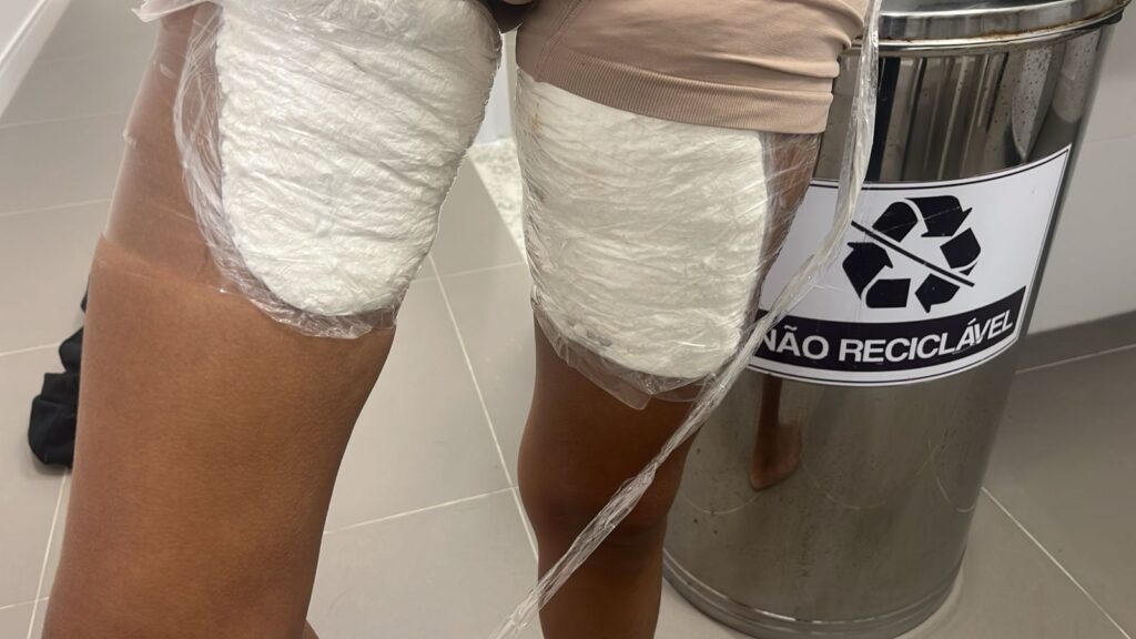 Segundo a PF, a acusada tem 23 anos e é natural da cidade de Fortaleza, no Ceará. Ela estava em um voo que saiu de Campo Grande, no Mato Grosso do Sul, e, ainda segundo os policiais, transportava a droga presa ao corpo com fitas colantes.