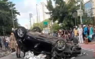 Informações iniciais são de que o carro descia a avenida quando o condutor teria perdido o controle do veículo. O carro teria capotado várias vezes.