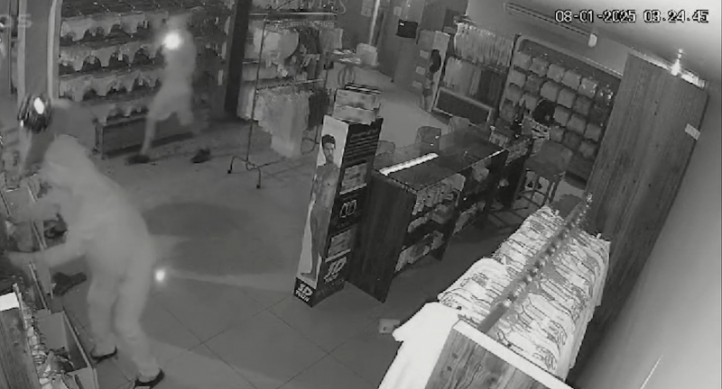 Câmeras de segurança instaladas no local registraram toda a ação. Nas imagens, é possível ver ao menos cinco indivíduos chegando em um carro, danificando uma das câmeras externas e forçando a porta de entrada até conseguirem arrombá-la. Já dentro da loja, o grupo rapidamente seleciona e rouba várias peças de roupas íntimas.