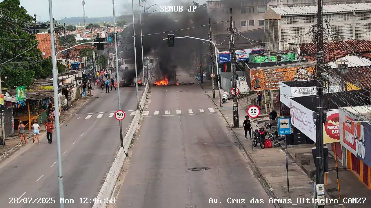 Um protesto está bloqueando totalmente a circulação de veículos nos dois sentidos da Avenida Cruz das Armas, na tarde desta segunda-feira (28), em frente à Feira de Oitizeiro em João Pessoa. A informação foi confirmada pela Superintendência Executiva de Mobilidade Urbana de João Pessoa (Semob-JP), que até o momento não divulgou o motivo da manifestação.
