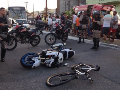 Um menino ficou gravemente ferido após a bicicleta em que ele estava ser atingida por uma moto na tarde deste sábado (12) no bairro de Cruz das Armas, em João Pessoa. De acordo com a Polícia Militar, a vítima, que tem cerca de 13 anos, brincava na rua quando o acidente aconteceu.