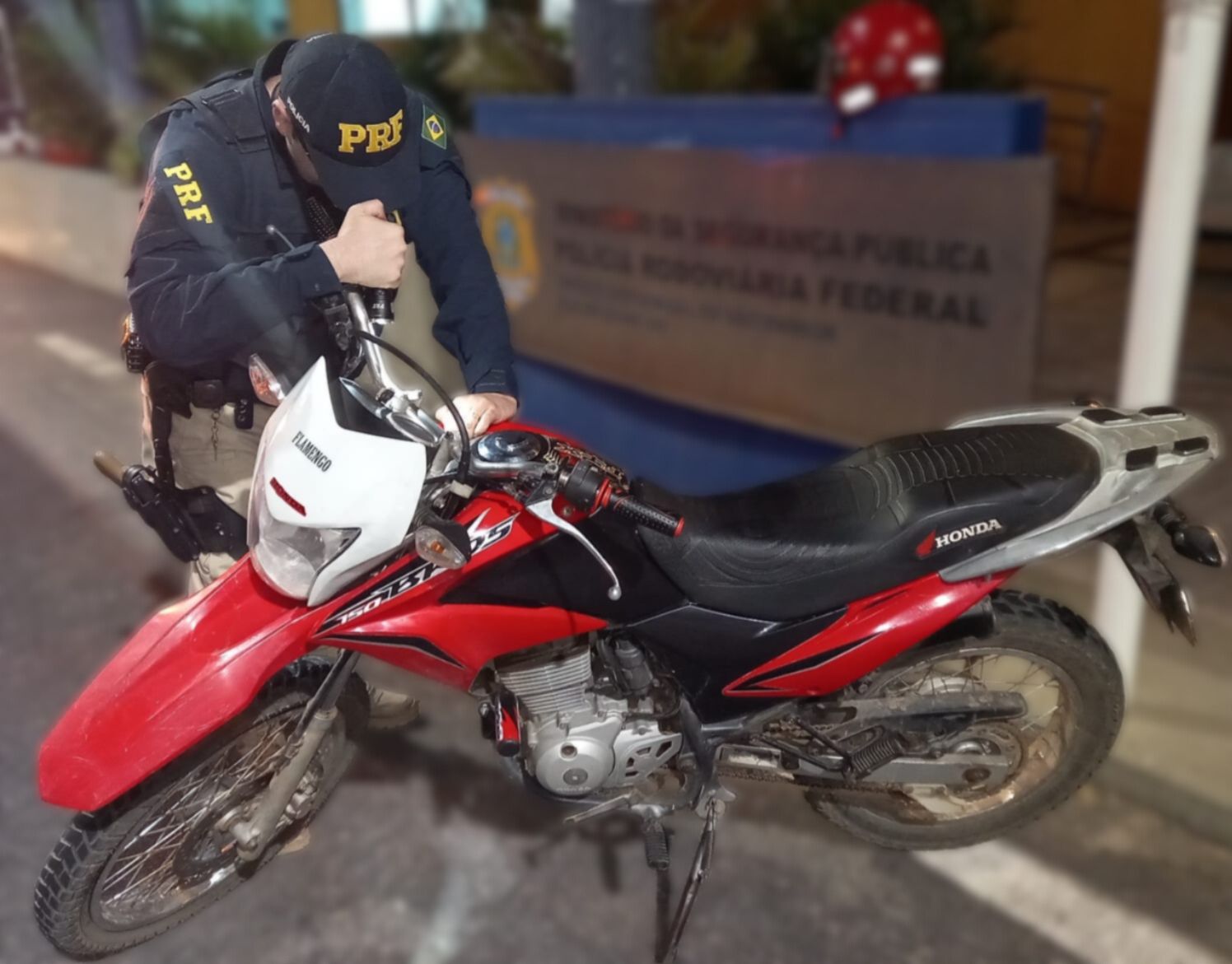Durante patrulhamento na BR-101, km 40, os policiais rodoviários federais desconfiaram de uma Honda NXR 150 Bros com placa de Pernambuco. Ao realizar uma inspeção minuciosa no veículo, os agentes constataram indícios de adulteração no número do chassi, com sinais de lixamento e remarcação.