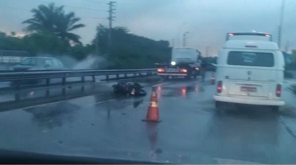 O homem foi levado ao Hospital de Emergência e Trauma, mas chegou sem vida. O trecho da pista onde o acidente aconteceu estava bem molhado em decorrência das fortes chuvas registradas nas últimas horas na região.