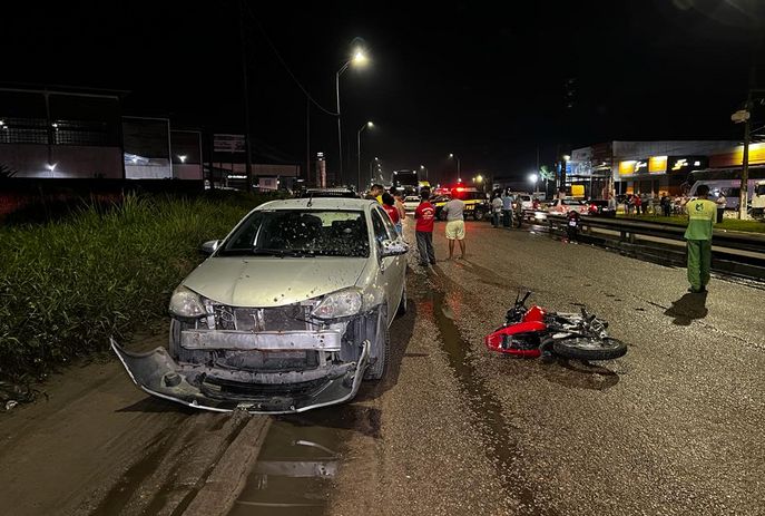 Um homem de 23 anos se chocou com um carro, na BR-101, no sentido Bayeux/João Pessoa, de frente a um posto de combustível, e morreu no local. O acidente aconteceu na noite de ontem (5).