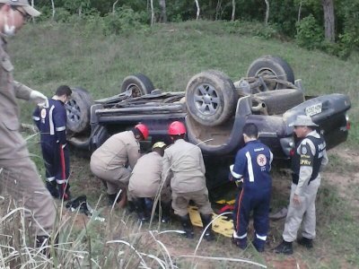Segundo informações do Corpo de Bombeiros, o motorista de uma caminhonete L200 tentou desviar de um caminhão que fazia uma ultrapassagem irregular e acabou caindo em uma ribanceira, capotando várias vezes.