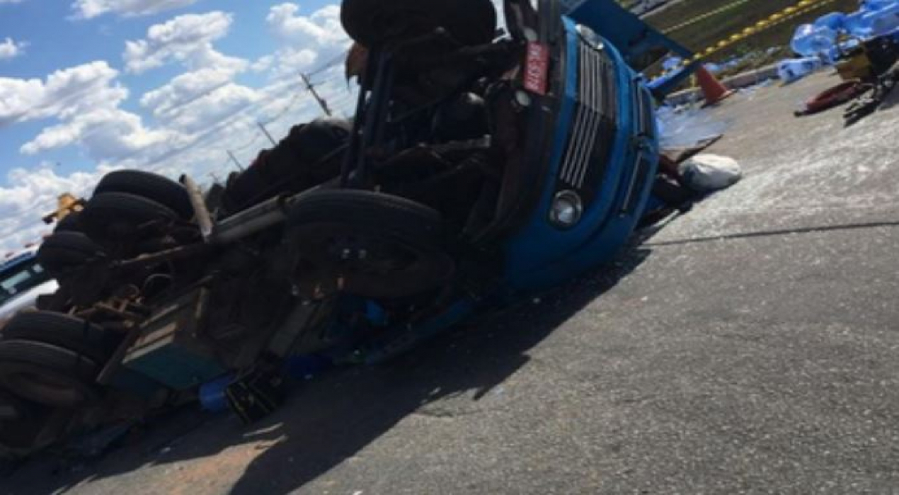 De acordo com a Polícia Rodoviária Federal (PRF), um caminhão que transportava galões de água mineral capotou na Alça Sudoeste, no sentido de quem se dirige a cidade de Queimadas.