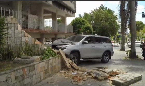 No final da manhã desta terça-feira (29), um carro colidiu com o muro do edifício Santa Rita, localizado no Centro de João Pessoa.