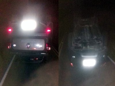 Um carro modelo Fiat Strada capotou na Rodovia PB-400, na noite de ontem, quarta-feira (07), entre os municípios de Monte Horebe e Bonito de Santa Fé, no Sertão paraibano.
